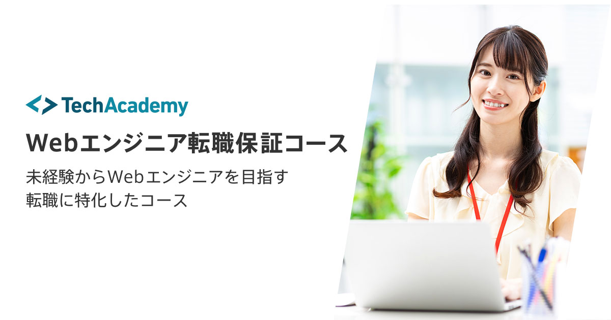 オンラインのプログラミングスクールとして、人気と実績を誇るTechAcademy。「エンジニア転職保証コース」で学んだ場合に、専門実践教育訓練給付の対象になります。